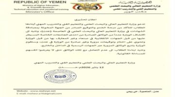 تحذير رسمي من تعليم عدن: تجنبوا الوثائق المزورة الصادرة عن جامعة حوثية في صنعاء!
