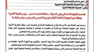 عاجل في عدن: حظر مؤقت للتظاهرات للحفاظ على الاستقرار